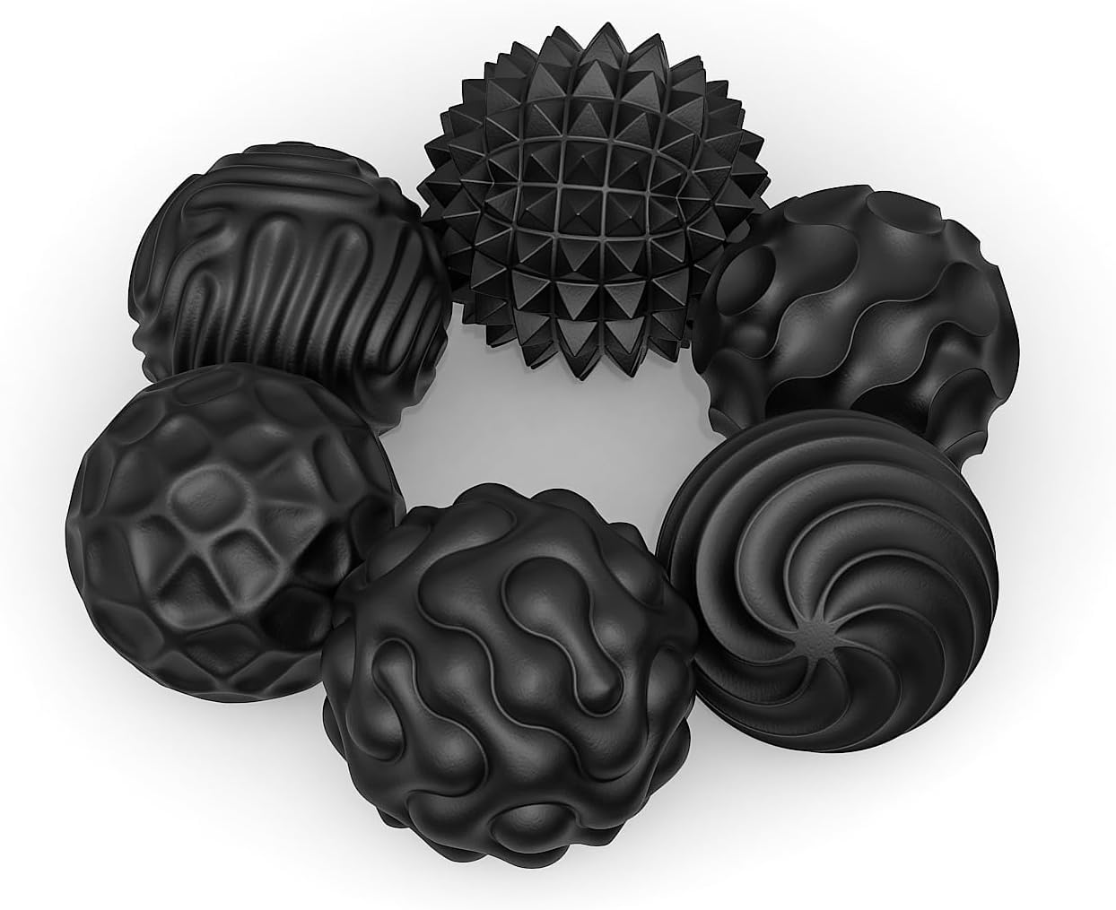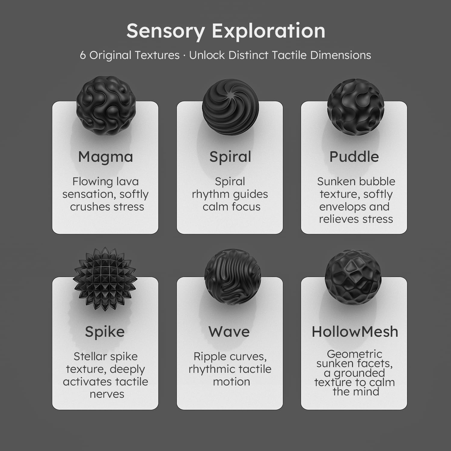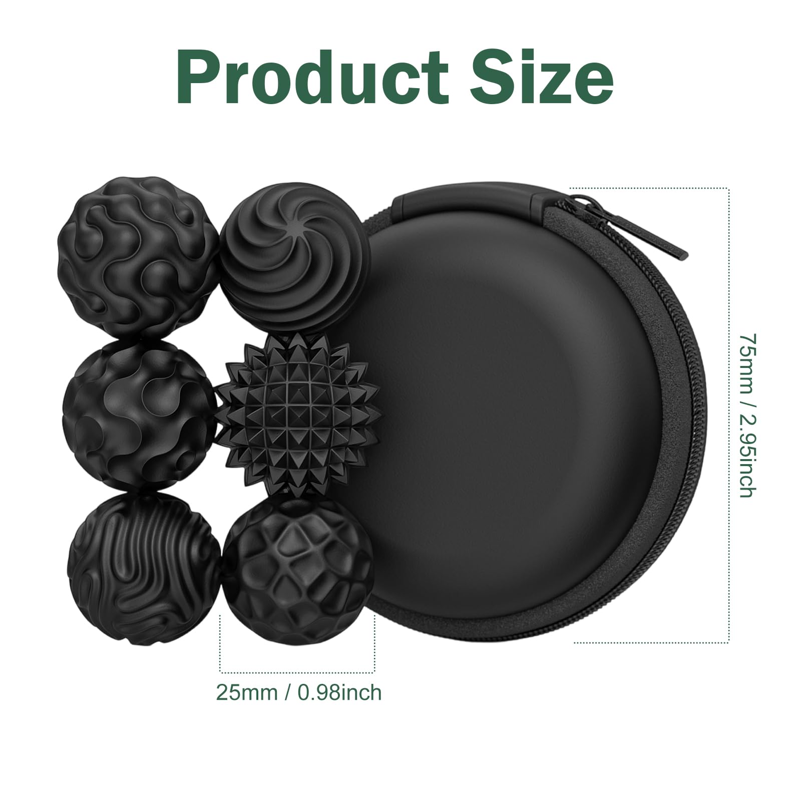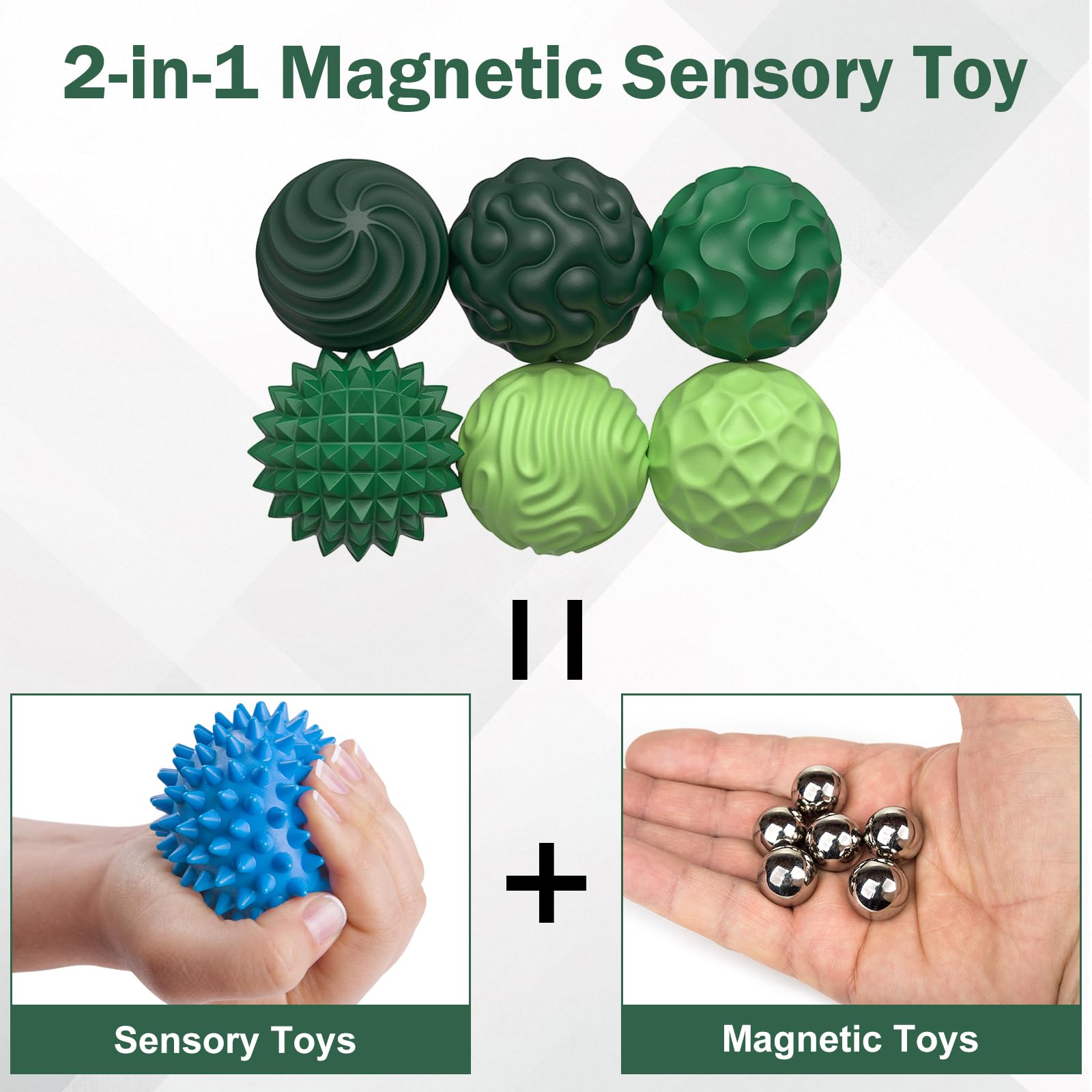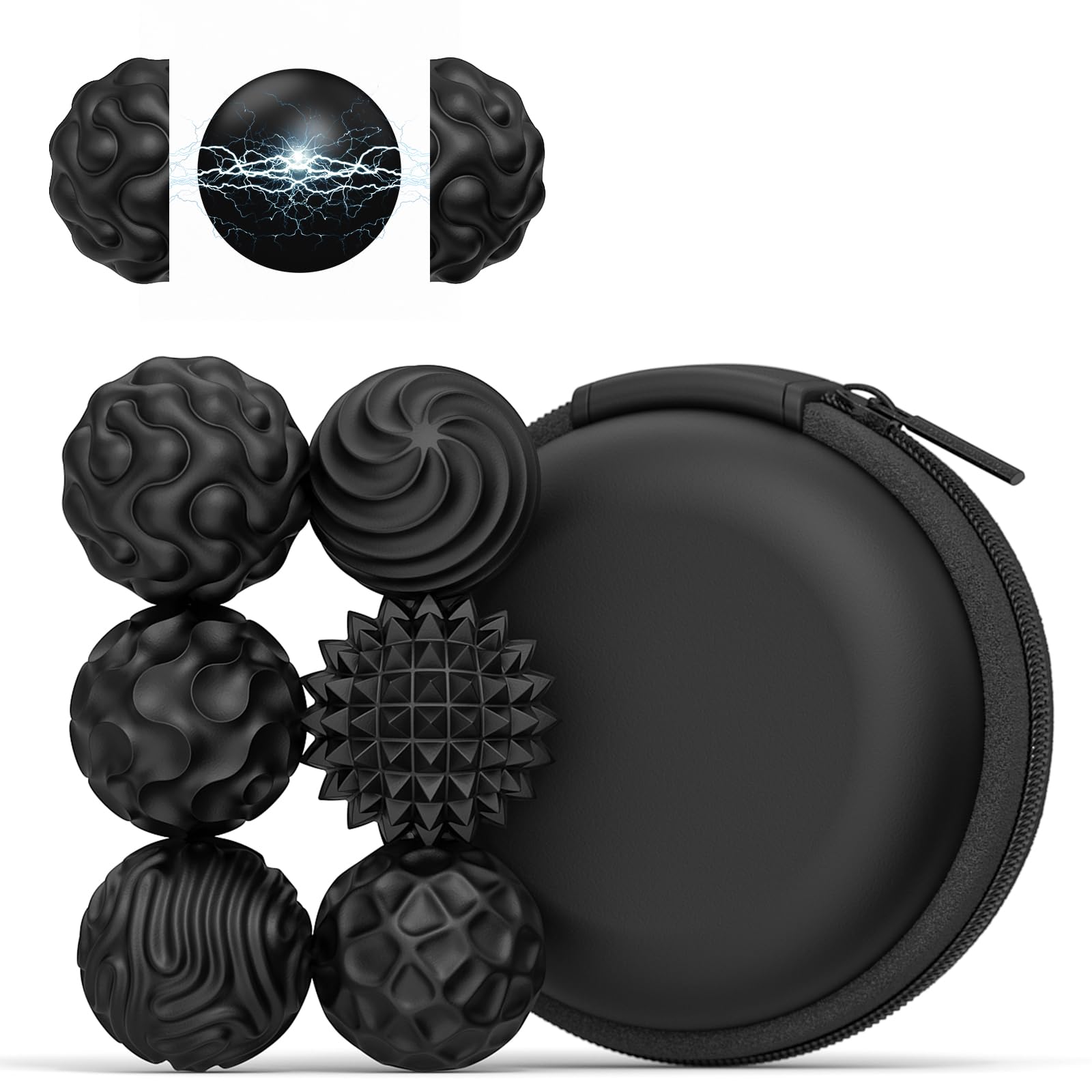 1. 6 sensorische Magnetkugeln aus Silikon und eine schwarze Aufbewahrungsbox. Leicht und tragbar, einfach zu verstauen und mitzunehmen – für Freude in jeder Situation.