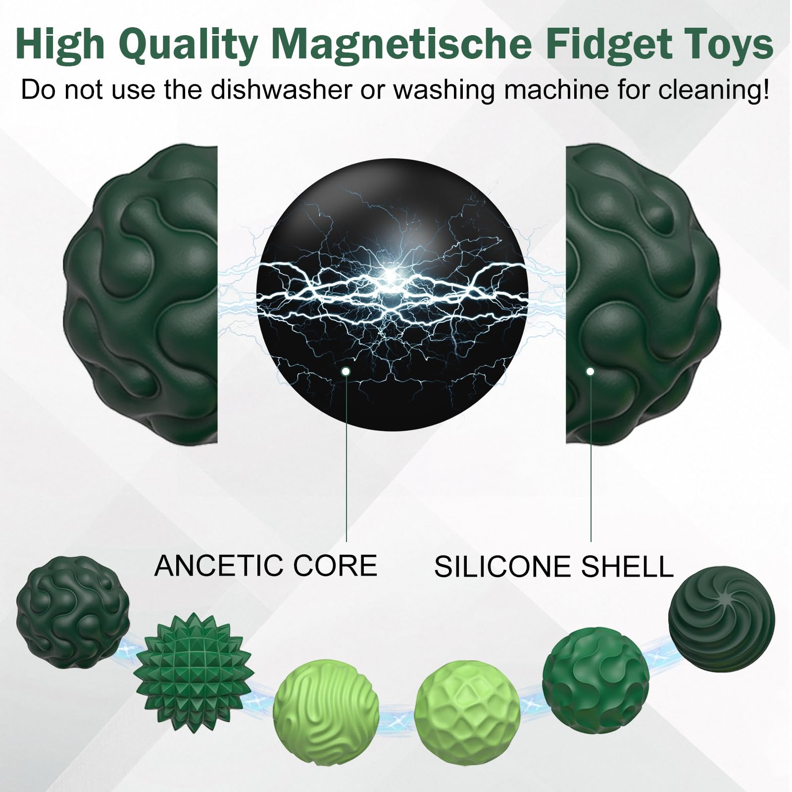 3. Der Magnetkugeln besticht durch sein durchdachtes Design: Die Magnetperlen sind in antistatischem Silikon eingeschlossen, was für Sicherheit und Unbedenklichkeit sorgt. Er ist antistatisch, quietscht nicht beim Reiben und bietet ein fesselndes und unterhaltsames Magnetspiel.